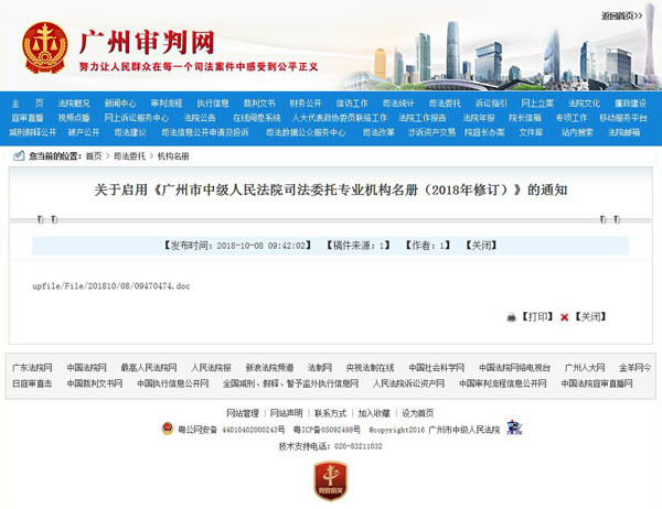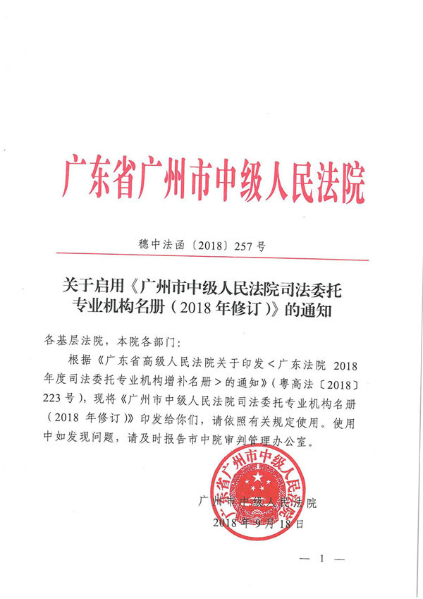 關(guān)于啟用《廣州市中級人民法院司法委托專業(yè)機構(gòu)名冊(2018年修訂)》的通知