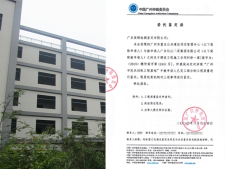 由中國廣州仲裁委員會審理的廣州市重點公共建設項目管理中心與廣東****集團有限公司施工合同糾紛一案,案件號為:(2019)穗仲案字第12441號,因案情需要,受中國廣州仲裁委員會委托,廣東保順檢測鑒定有限公司對涉案“廣州市民兵訓練工程基地”中辦公教學樓、干部培訓中心、保障人員宿舍、綜合樓等7棟建筑已完工部分的工程質量是否滿足設計圖紙要求進行相關檢測鑒定(相關設計圖紙由委托方提供)。本次鑒定的主要內容為: